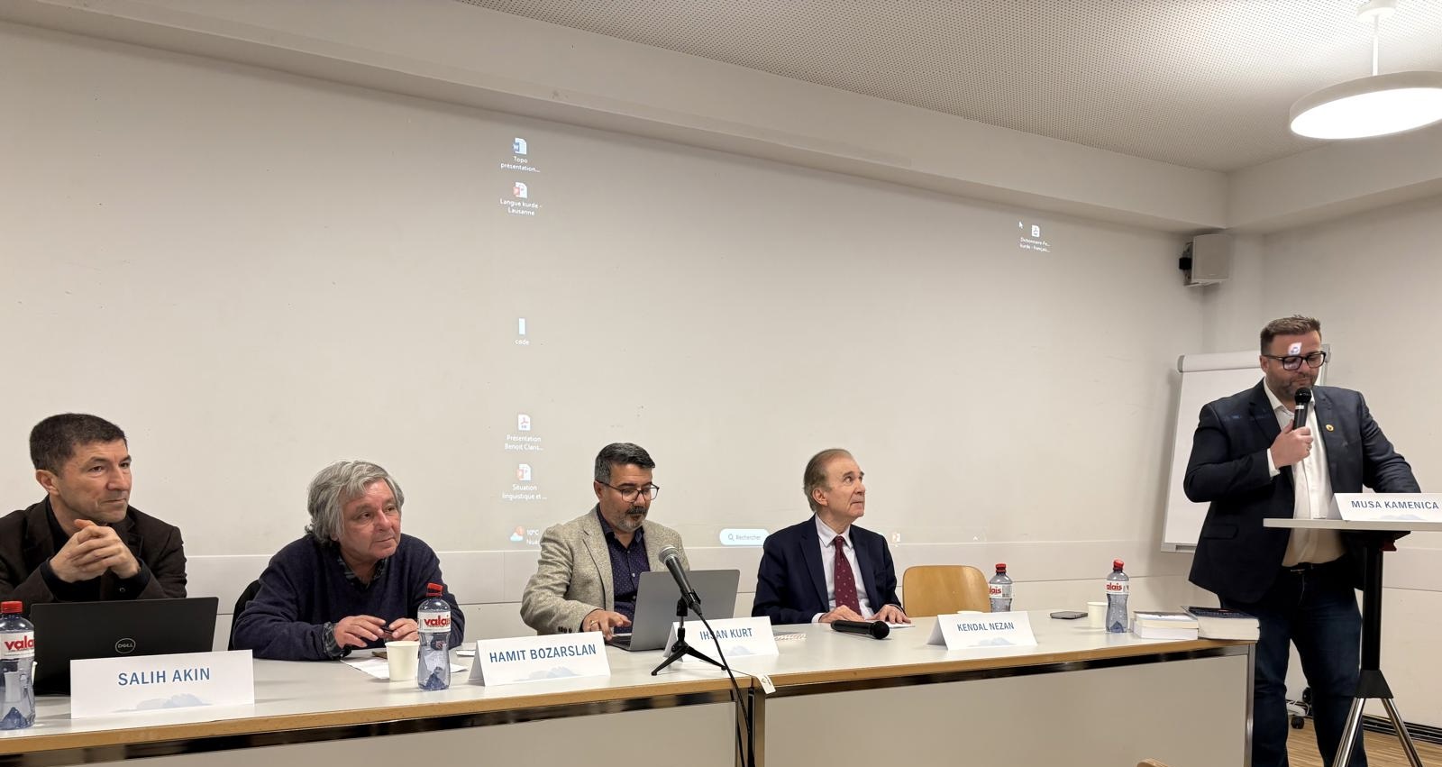Pour un peuple estimé à plus de 40 millions de personnes, réparties entre la Turquie, l’Irak, l’Iran et la Syrie, et fort d’une diaspora de plusieurs millions d’individus en Europe, la question linguistique demeure indissociable de celle de la reconnaissance politique. Le linguiste Salih Akin, professeur à l’Université de Rouen, a dressé un état des lieux précis de la situation du kurde dans ces différents États. Il a rappelé les politiques d’assimilation qui ont longtemps visé la langue, en particulier en Turquie où, malgré certaines évolutions, l’enseignement public en kurde reste extrêmement limité après des décennies d’interdiction. Dans ce contexte, parler sa langue, l’enseigner, la publier ou la normaliser relève à la fois d’un acte culturel et d’un geste politique.